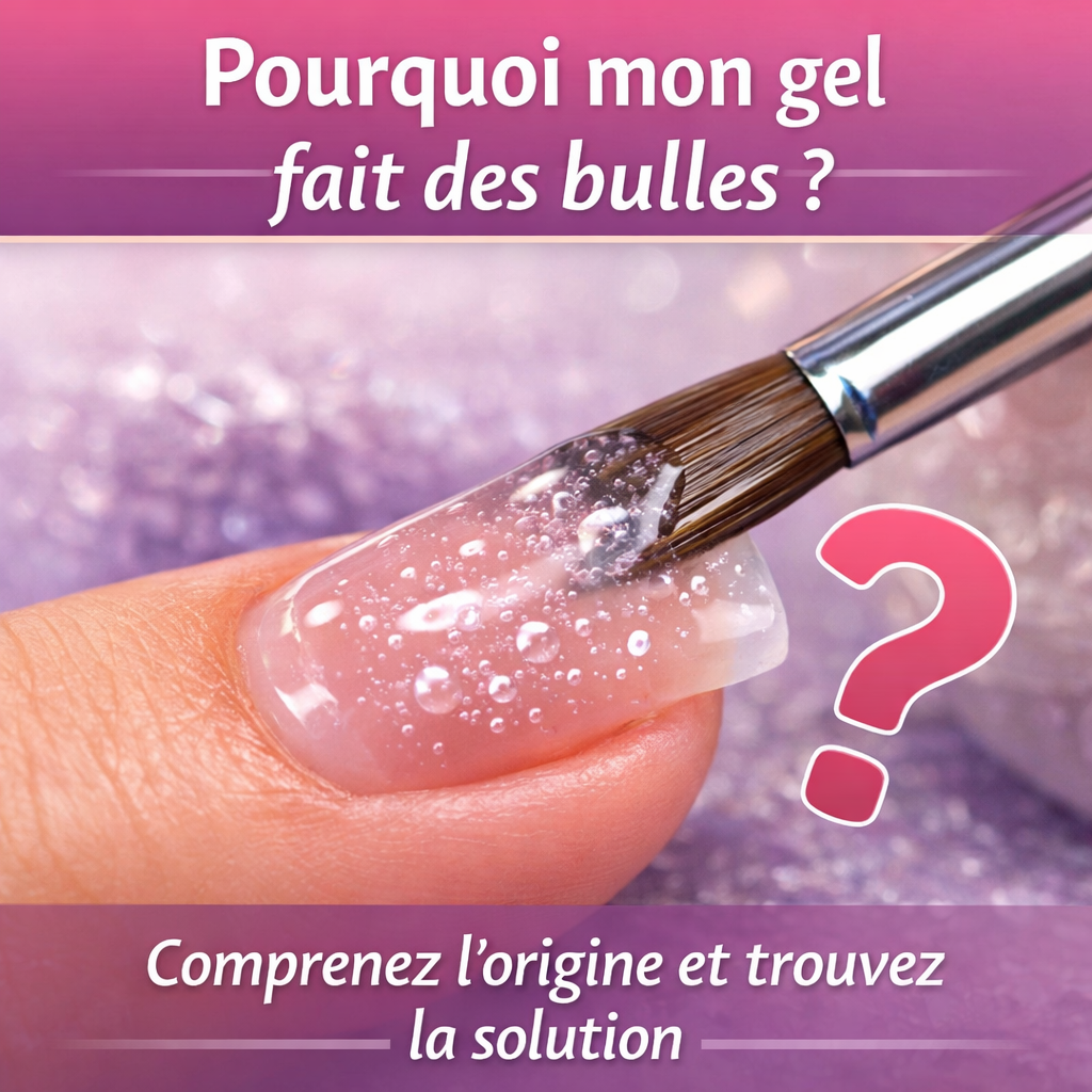 Quand on se demande “pourquoi mon gel fait des bulles ?”, la réponse ne vient pas d’une seule cause. Dans la plupart des cas, le problème est lié à la manipulation du gel, à la gestuelle au pinceau, à une matière trop travaillée ou à une application qui emprisonne de l’air.