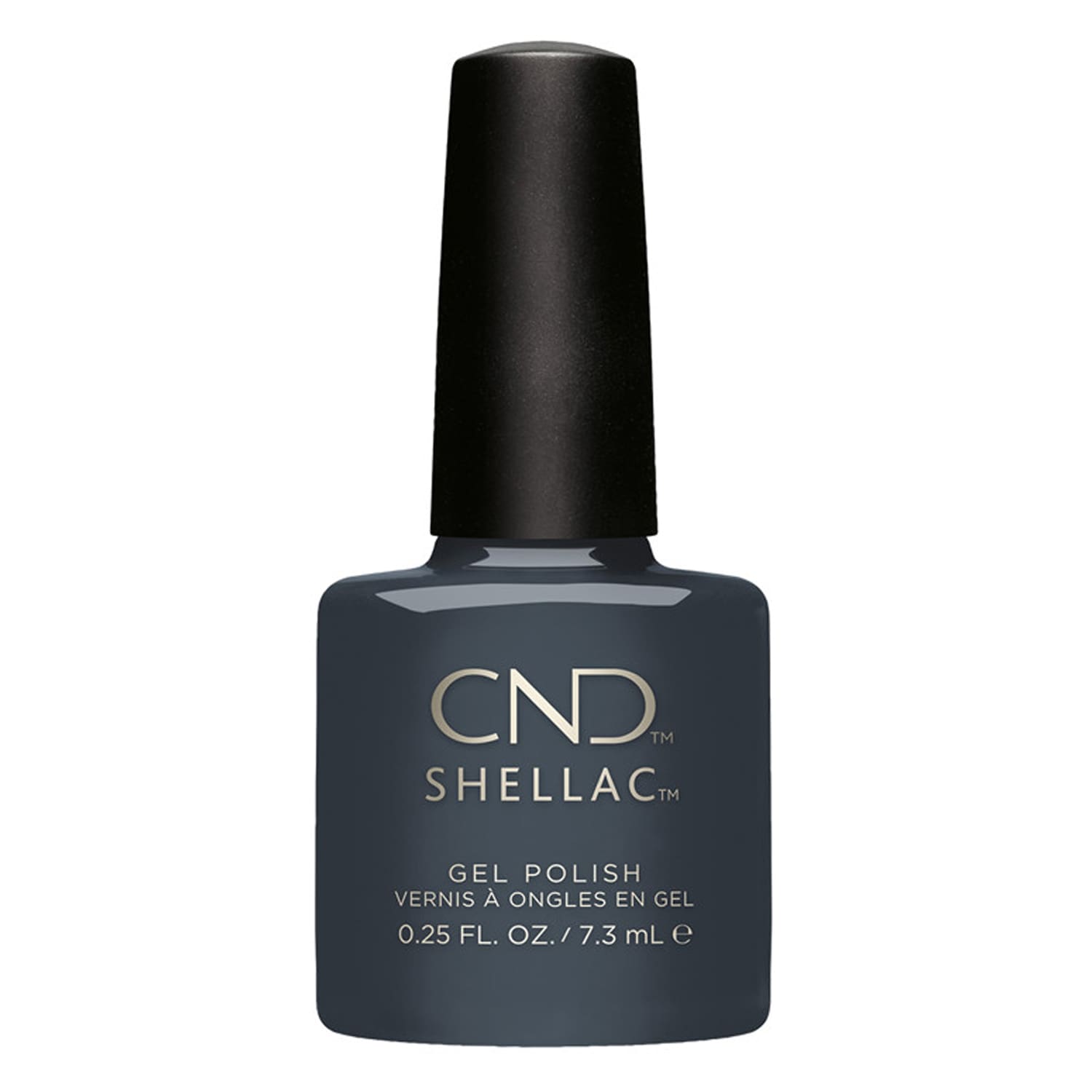 Le vernis semi-permanent professionnel CND™ Shellac Asphalt révèle un gris anthracite profond à la brillance miroir éclatante.