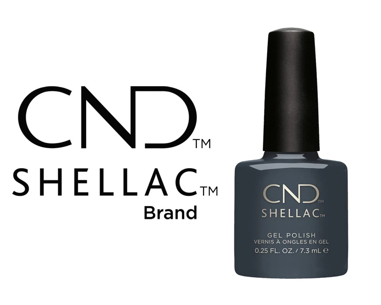 Le vernis semi-permanent professionnel CND™ Shellac Asphalt révèle un gris anthracite profond à la brillance miroir éclatante.