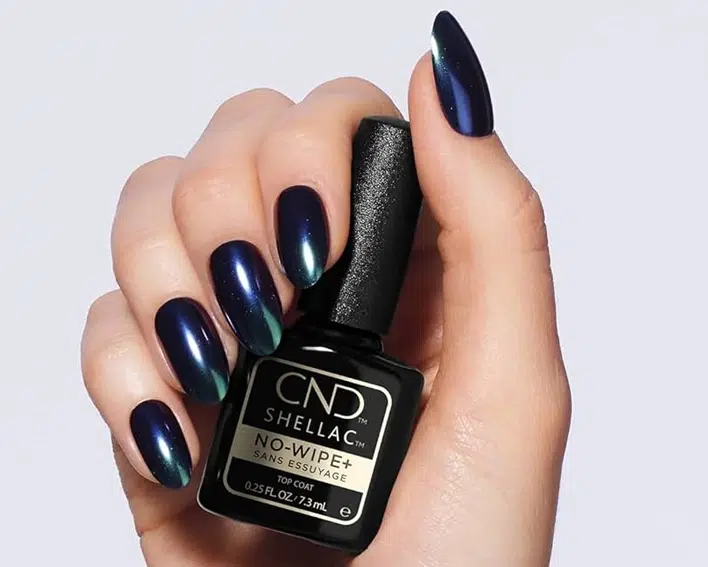 Le CND™ SHELLAC™ Top Coat No-Wipe+ combine efficacité, rapidité et excellence de finition.