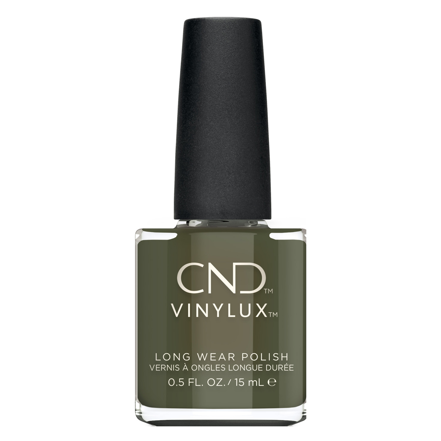 CND VINYLUX™ Cap & Gown est un vernis vert kaki chic et tendance. Couleur profonde, séchage rapide et brillance longue durée grâce à la technologie ProLight™.
