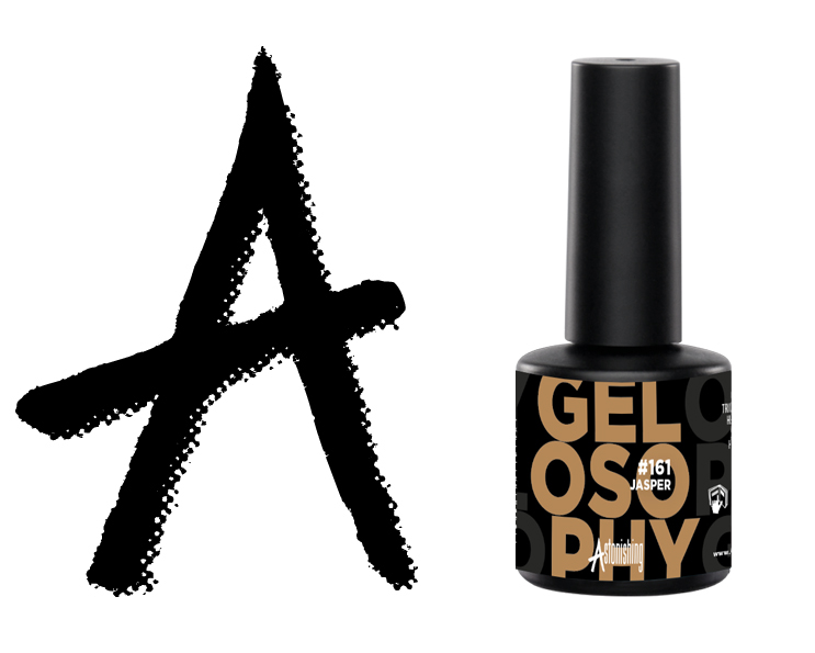 Capsule de présentation du vernis permanent AstonishingNails Gelosophy #161 Jasper, un beige caramel doux et naturel à la finition brillante.Capsule de présentation du vernis permanent AstonishingNails Gelosophy #161 Jasper, un beige caramel doux et naturel à la finition brillante.