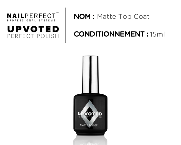 Le UPVOTED Matte Top Coat est un produit de finition haut de gamme conçu pour celles qui souhaitent un effet « velours » ou mat sur toutes les teintes.