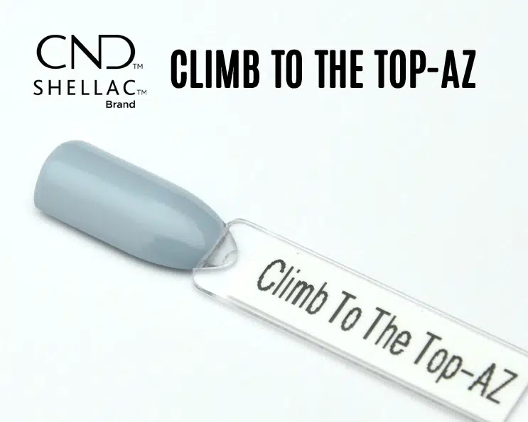 Le vernis semi-permanent CND™ Shellac Climb To The Top-AZ est un vernis gel professionnel à la teinte bleu gris clair inspirée des nuances du ciel d’hiver et des pierres bleutées.