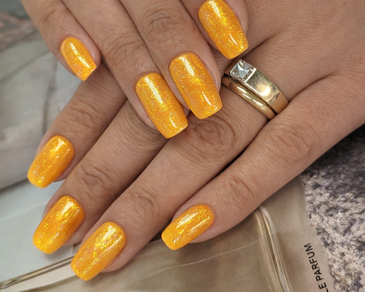 Une couleur solaire, audacieuse et raffinée, idéale pour mettre en valeur les mains bronzées.