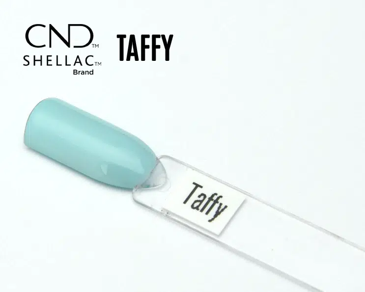 Découvrez la teinte Taffy de CND™ Shellac — un bleu pastel doux et frais, délicatement teinté d’une touche de turquoise menthe.